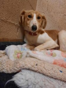 Sandy is surprisingly immaculate in her kennel. House-training will be no problem even though we don’t believe she has ever lived in a home before. Sandy also loves bed. Like a lot of lurchers, she will probably want to evict her owner from their sofa if they don’t provide her with a huge bed of her own!