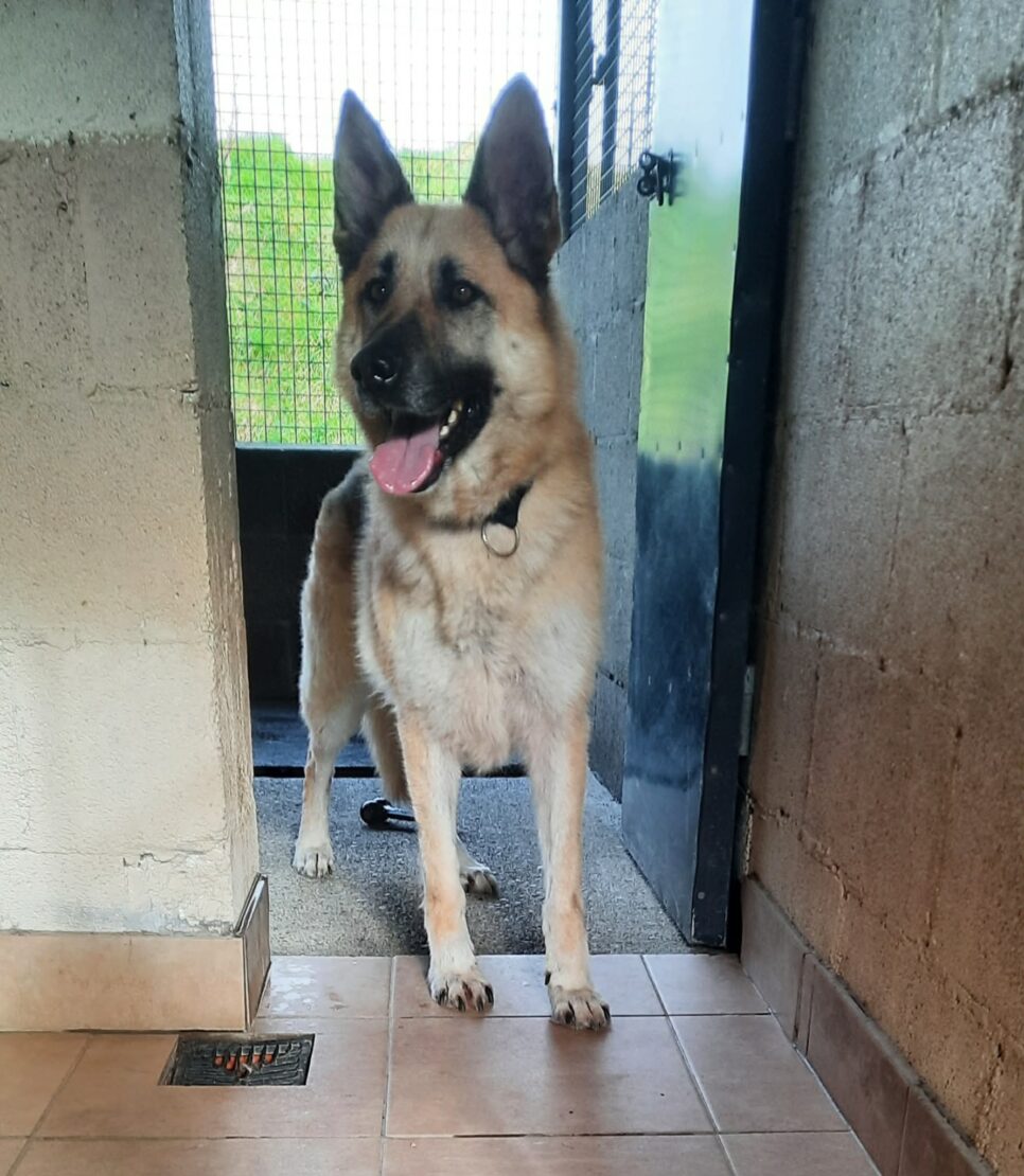 With people, Tyson is very measured initially. He takes his time to sniff around you and get to know you before he shows you his trusting side. Like all Shepherds, Tyson is a sensitive lad – to loud noises, to too much action around him, to being approached / grabbed suddenly. For this reason we would like a calm, reassuring home with children no younger than 14.